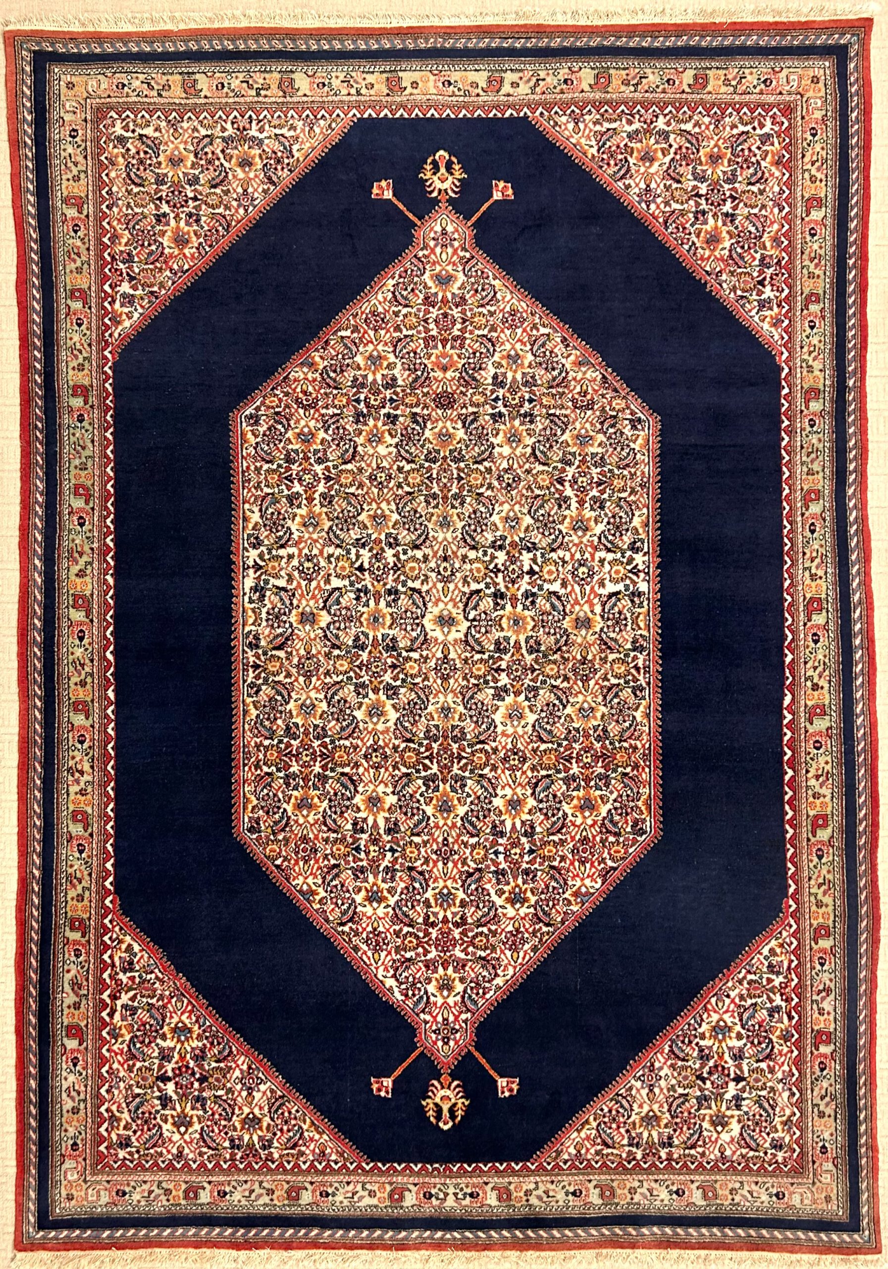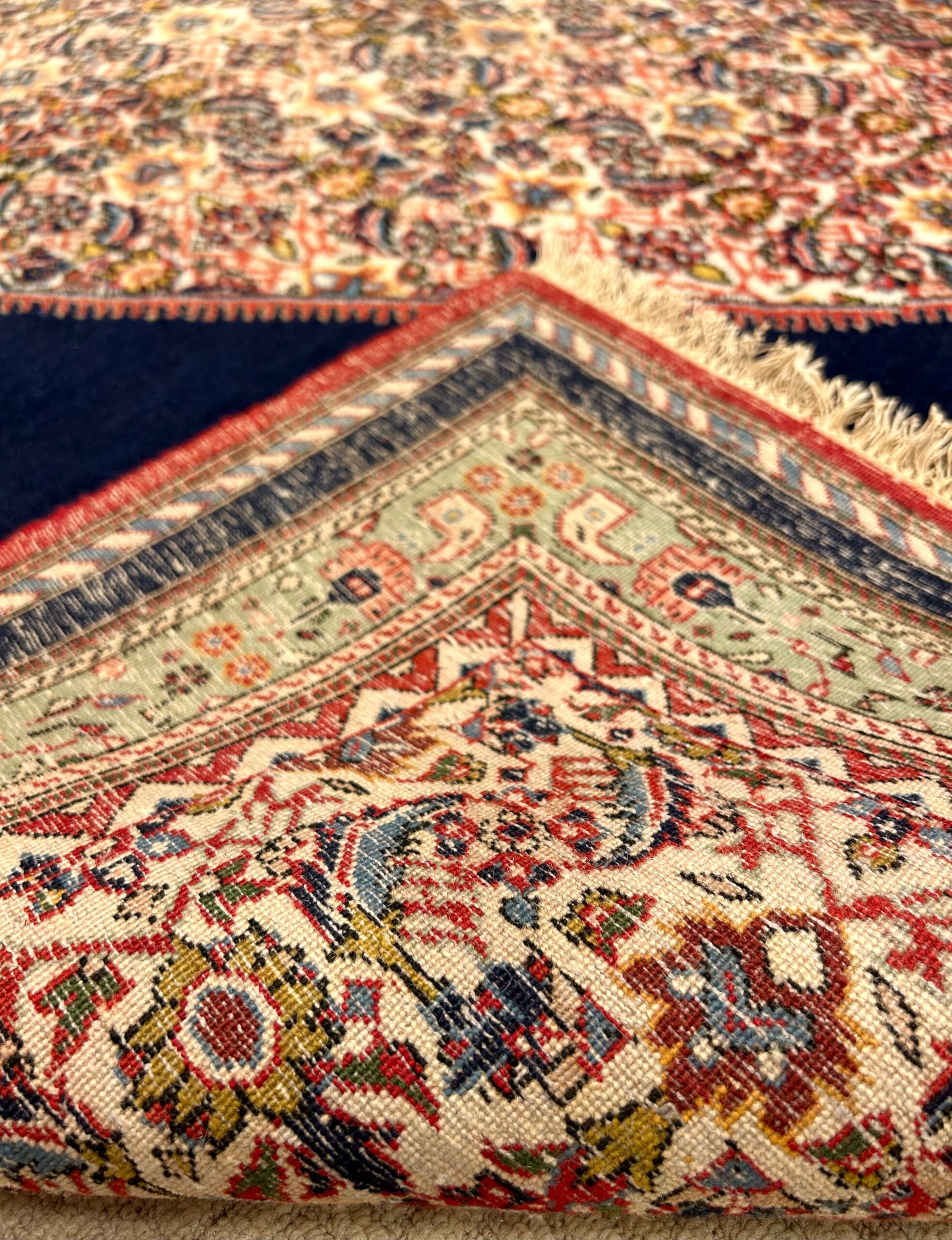 Antik; letztes Viertel 19. Jh.; West Persien; Material: Korkwolle auf Baumwolle; oberer und unterer Abschluss: verkürzt;