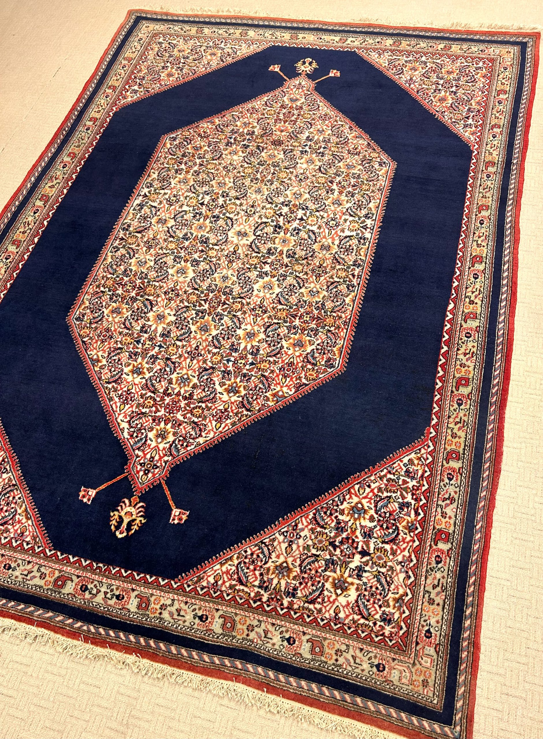 Wir bieten weltweiten, versicherten Versand an. Die Bezahlung erfolgt per Banküberweisung. Bei ernsthaftem Interesse stellen wir Ihnen gerne weitere Bilder sowie Detailvideos des jeweiligen Teppichs zur Verfügung.