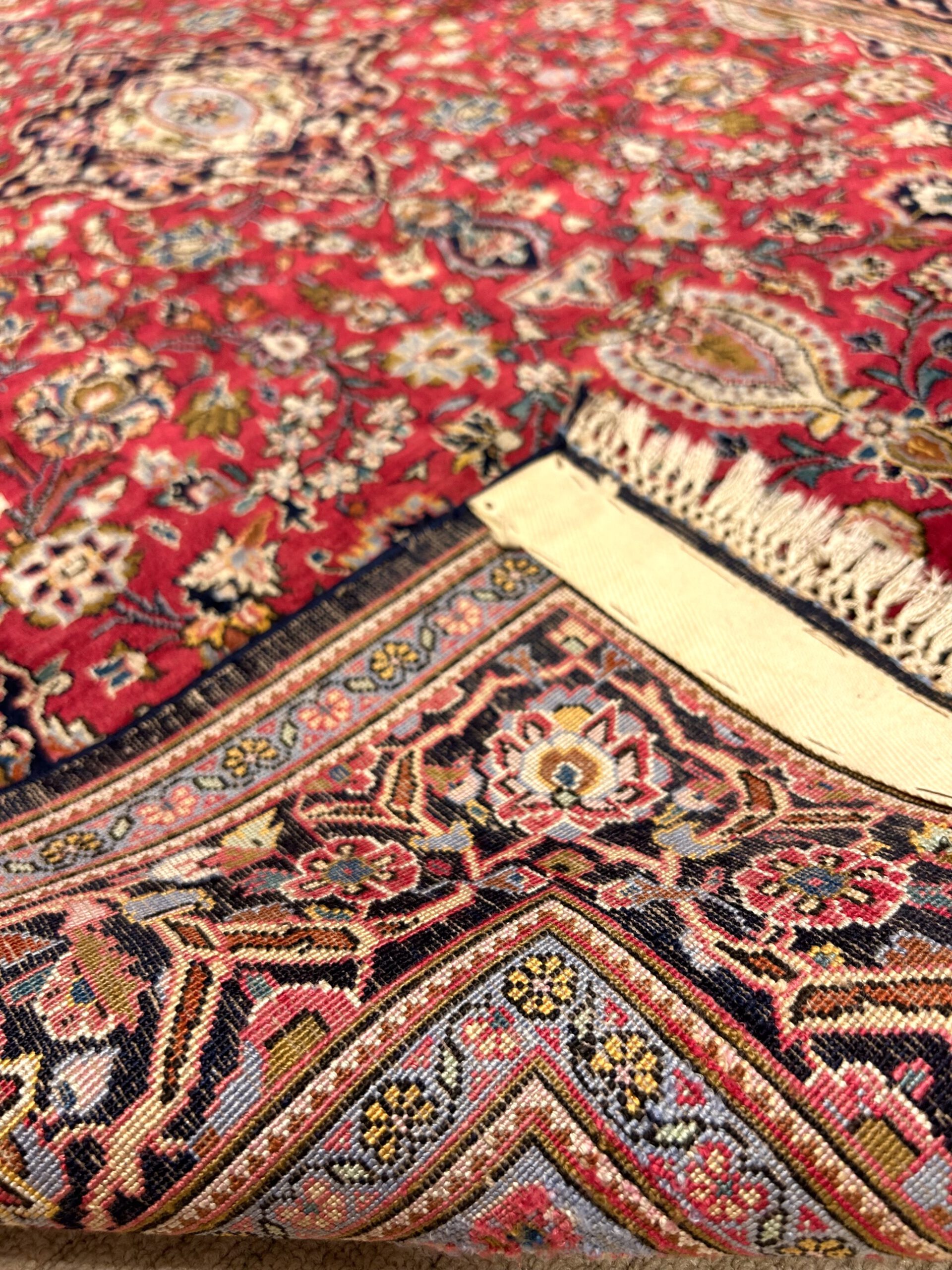 Antik; erstes Viertel 20. Jh.; zentral Persien; Material: Naturseide (Raupenseide) auf Naturseide (Raupenseide); oberer und unterer Abschluss: original;