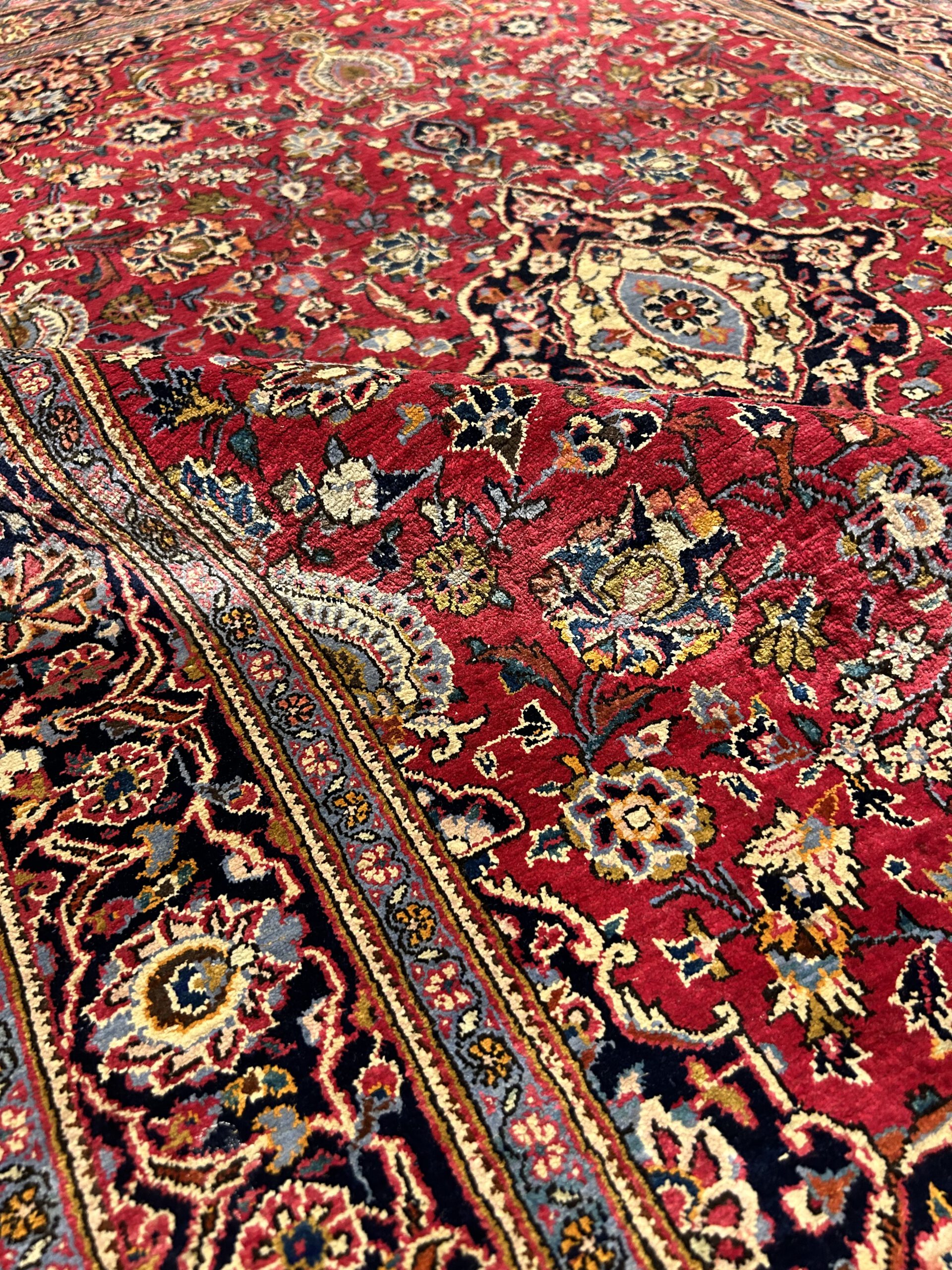 Die überwiegende Mehrheit der heute erhältlichen wertvollen antiken und alten Keschan-Teppiche stammt in der Regel aus der zweiten Hälfte des 19. bis Anfang des 20. Jahrhunderts. In dieser Zeit wurden die besten antiken Keschan-Teppiche für Privathäuser in Auftrag gegeben, während andere für den heimischen oder ausländischen Markt produziert wurden. Für die besten Keschan-Teppiche wurde stets eine hervorragende Woll- oder Seidenqualität verwendet. Ältere antike Teppiche sind mit pflanzlichen Farbstoffen gefärbt, später fanden bei weniger feinen Teppichen auf Chromfarben ihre Verwendung. Die Teppiche wurden mit einem Baumwollgrundgewebe und einem persischen Knoten eng gewebt. Der dünne doppelte Schuss ist oft blassblau, und die Wolle ist unglaublich weich und glänzend. Im frühen 20. Jh. beherrschten die Knüpfer von Keschan die geschwungenen Muster, die heute als typisch für die Keschan-Knüpfereien gelten und viele weitere Orte inspiriert haben.