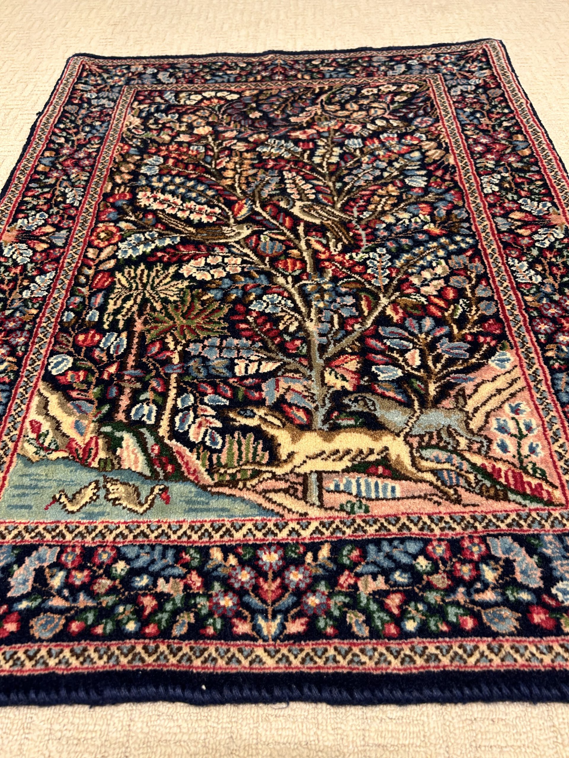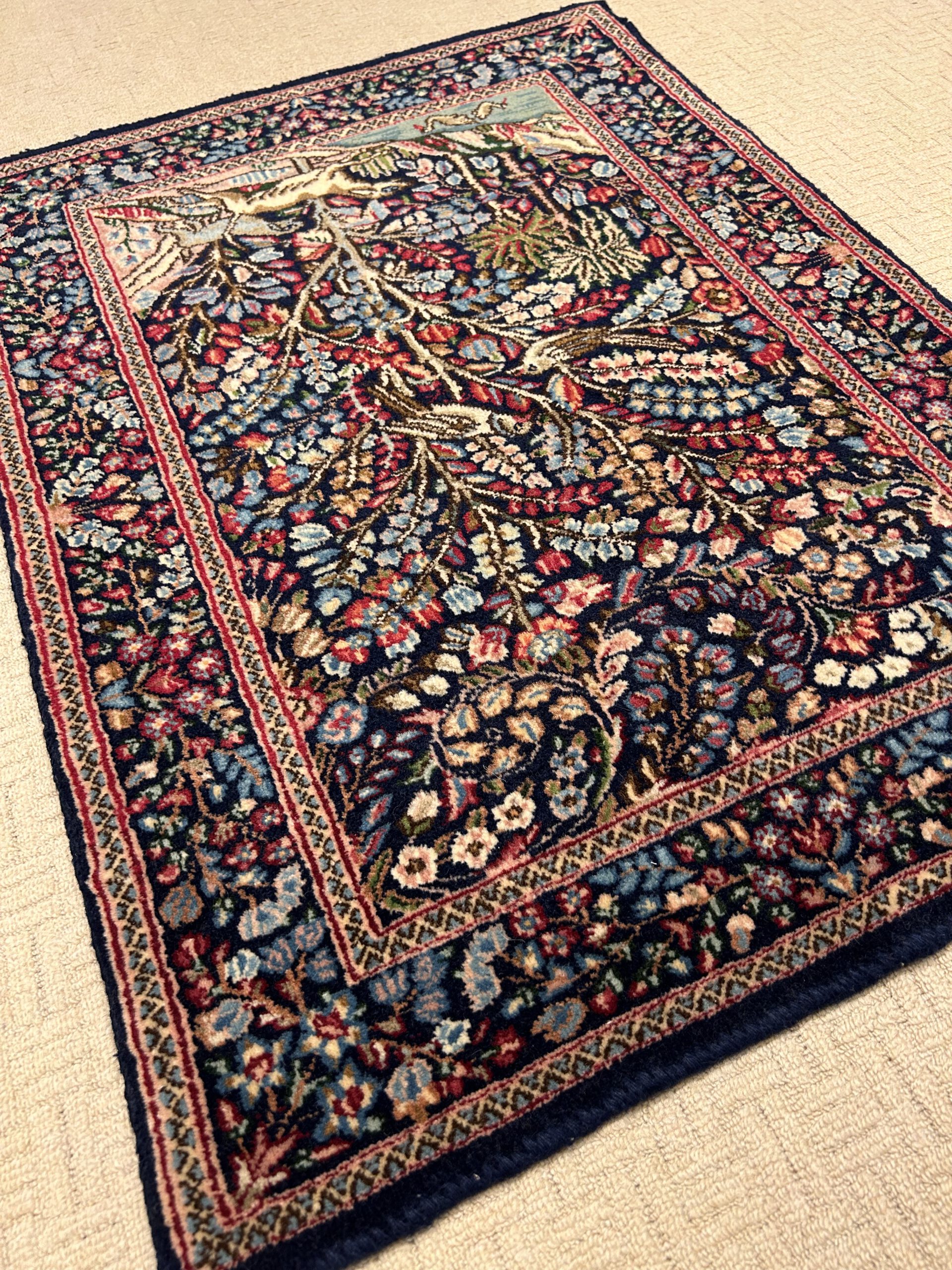 Kirman liegt in der großen Wüste Südpersiens und war schon vor der Zeit Marco Polos ein wichtiges Handels- und Knüpfzentrum. Kirman-Teppiche gehörten zu den ersten antiken Perserteppichen, die ihren Weg in den Westen fanden, wo sie in Europa und ab dem späten 19. Jahrhundert auch bei den Industriellen des amerikanischen Nordostens begehrt waren. Die persischen Teppichknüpfer der Kirman-Region wurden ihrerseits von der europäischen Kultur beeinflusst und entwickelten ab dem 16. Jahrhundert einen weichen, anmutigen Stil, der Elemente klassischer persischer Hofteppiche mit den Farben und Mustern französischer Textilien verbindet.