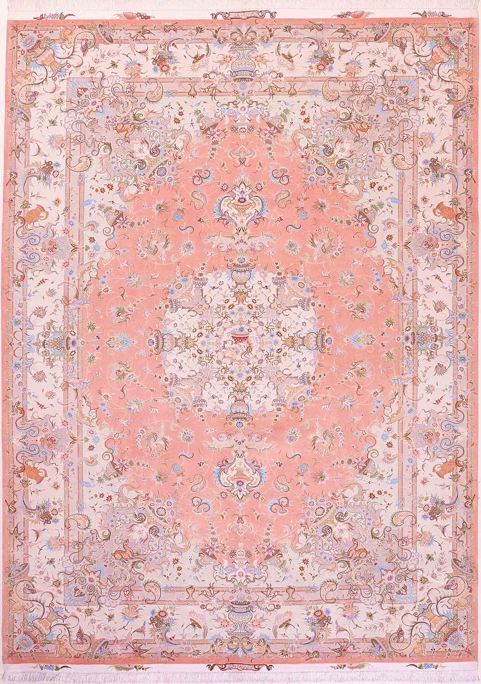 Feiner Täbriz aus hochwertiger persischer Schurwolle zusammen mit Naturseide handgeknüpft auf einer Grundierung aus Baumwolle.